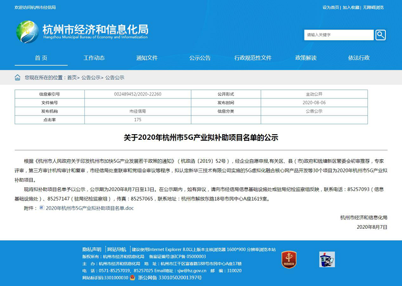 敘簡科技“基于5G的大數(shù)據(jù)智能應(yīng)急管控指揮平臺”項目,于2020年8月7日獲得“杭州市經(jīng)濟和信息化局”的立項支持并予以公示。
