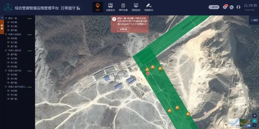 ? ? 敘簡(jiǎn)科技承建的杭州市富陽(yáng)區(qū)金橋北路市政綜合管廊監(jiān)控與報(bào)警統(tǒng)一管理平臺(tái),依托GIS+BIM、物聯(lián)網(wǎng)等技術(shù),打造了運(yùn)行監(jiān)測(cè)、值守聯(lián)動(dòng)、巡檢維護(hù)、運(yùn)營(yíng)管理四大業(yè)務(wù)應(yīng)用模塊,向下進(jìn)行監(jiān)控與報(bào)警系統(tǒng)的對(duì)接,實(shí)現(xiàn)各個(gè)子系統(tǒng)的關(guān)聯(lián)協(xié)調(diào),向上提供符合市級(jí)平臺(tái)要求的封裝接口供獲取數(shù)據(jù)使用。
