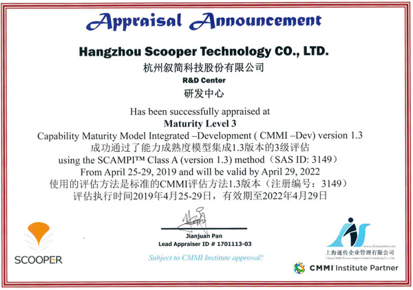 近日,敘簡科技成功通過國際CMMI3級資質(zhì)認證,這標(biāo)志著敘簡科技的軟件研發(fā)成熟度與項目管理水平已躋身國際先進行列。
