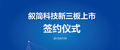2015年7月18日,在未來科技城市民之家5樓會議廳舉辦了敘簡科技新三板的簽約儀式,應(yīng)邀參加此次簽約儀式的有未來科技城管委會、銀江資本、解放軍理工大學(xué)、余杭農(nóng)村商業(yè)銀行科技支行等嘉賓? ? ?