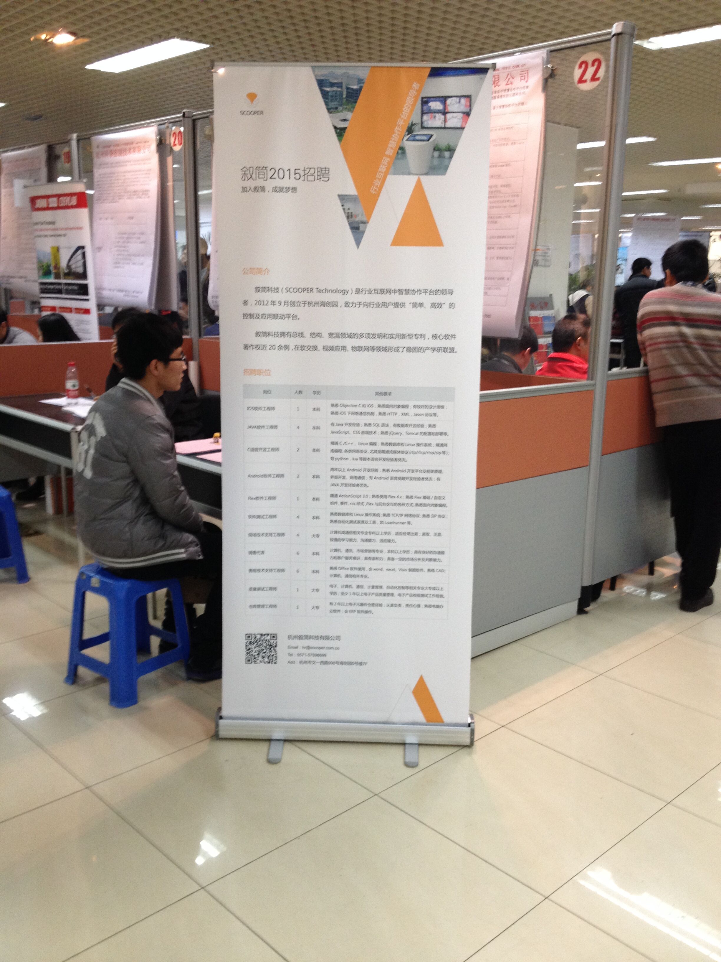 2015年03月07日,叙简科技参加了新春第一场杭州高新人才市场的现场招聘会,此次招聘主要面向通信、计算机、电子、营销等专业的岗位,以满足公司软件研发、售前售后技术支持、售前顾问以及市场销售代表等方面的人才需求。