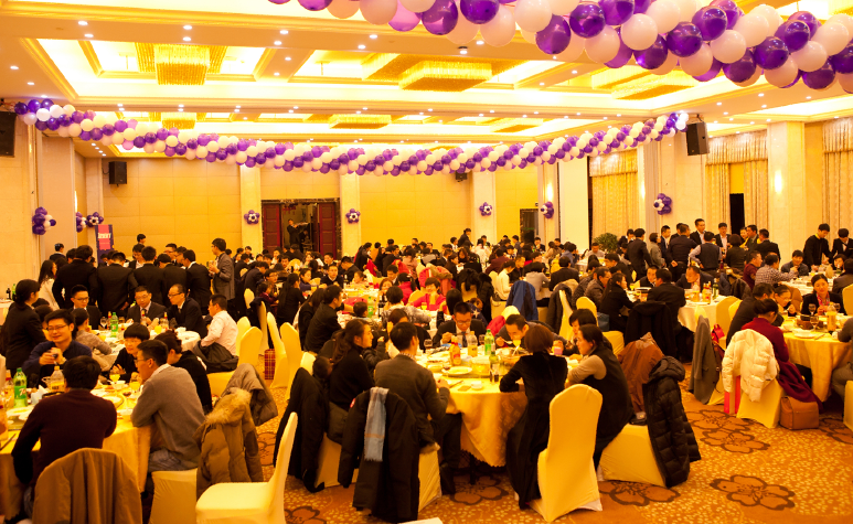 这次因公司员工数突飞猛进,加上家属们的热情出席,我们将盛宴的地点准备在了西子湖畔的华北饭店宴会大厅举行。