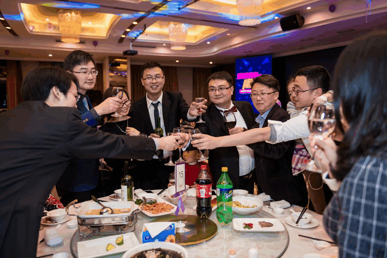 盛典的结束之后,我们在宴会厅举行了新年晚宴,公司的嘉宾、员工以及家属,大家共享我们的美食和美酒。