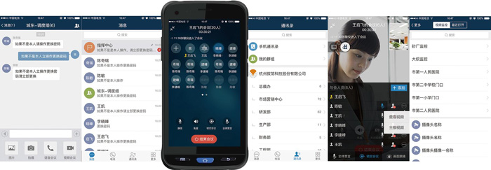 终端内置叙简科技自主研发的APP应用,实现终端与终端、终端与指挥中心的音视频通话功能,文字、图片、语言、视频等多媒体即时消息功能,定位、轨迹、视频点播等扩展功能;用户可一键发起一对一、一对多的群组通话,在通信网络覆盖范围外还可通过UHF超短波对讲功能实现终端间的紧急联络。