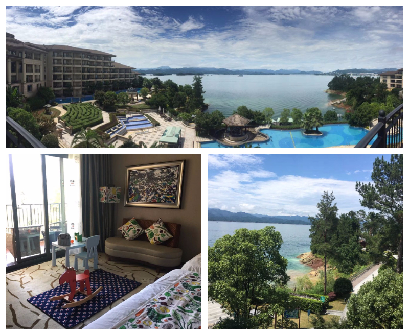 酒店周边环境优美,窗外就是平静宽广的千岛湖,内部设施十分舒适且极具人性化,为随行小朋友特别预定的亲子房更是布置的十分温馨,让人有家的感觉。下午茶时间,坐在阳台躺椅上,微风拂面,面对美丽的湖景,惬意十足;也有不少小伙伴与小朋友一起迫不及待地跳入无边泳池嬉戏玩耍。