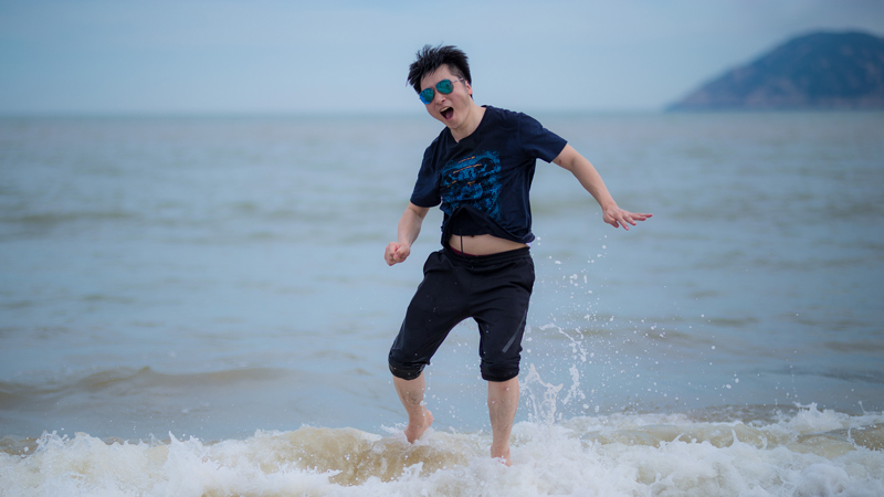 早上从杭州乘车出发,看着窗外天朗气清,碧水蓝天白云,劳累的心情也渐渐放松下来。吃过午饭,简单休息后大家一起来到了朱家尖南沙沙滩,面对一望无际的大海,就好像人的心灵面向着无限辽远。它的宽阔宁静汹涌奔流一如人生必须走过的道路。走入海里,浪花一遍遍冲刷着,带走了疲劳,填入了快乐与活力。