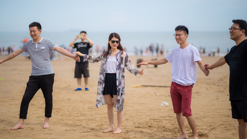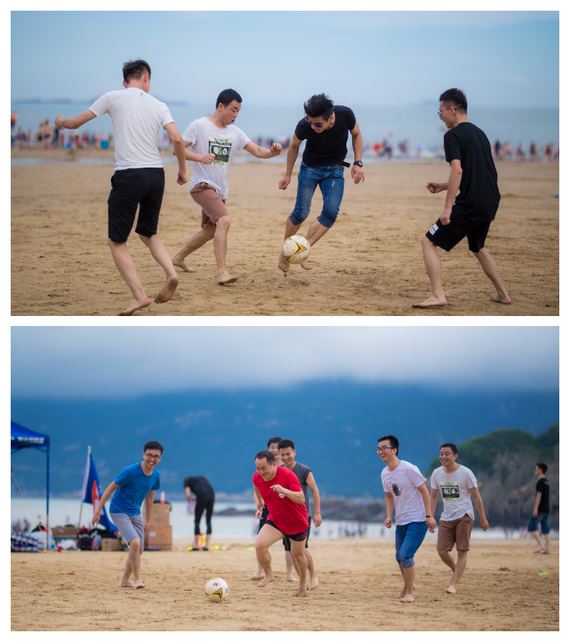 小伙伴们自由组队活动。柔软的细沙,火热的太阳,伴随着远处激情的讲解声,在这世界杯进行得如火如荼的阶段,来一场沙滩足球是最好不过的了。
