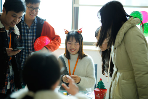 第三关是用五种语言说出“圣诞快乐”,包括方言,普通话,英语。大家不畏惧语言的障碍,纷纷通关,获得终极大礼。第三关关卡负责人是外聘研发中心的宋潇。在她的带动鼓舞下,很多研发内向的同事们也积极参与到游戏中,让跨部门的同事有机会集聚一堂互相了解。