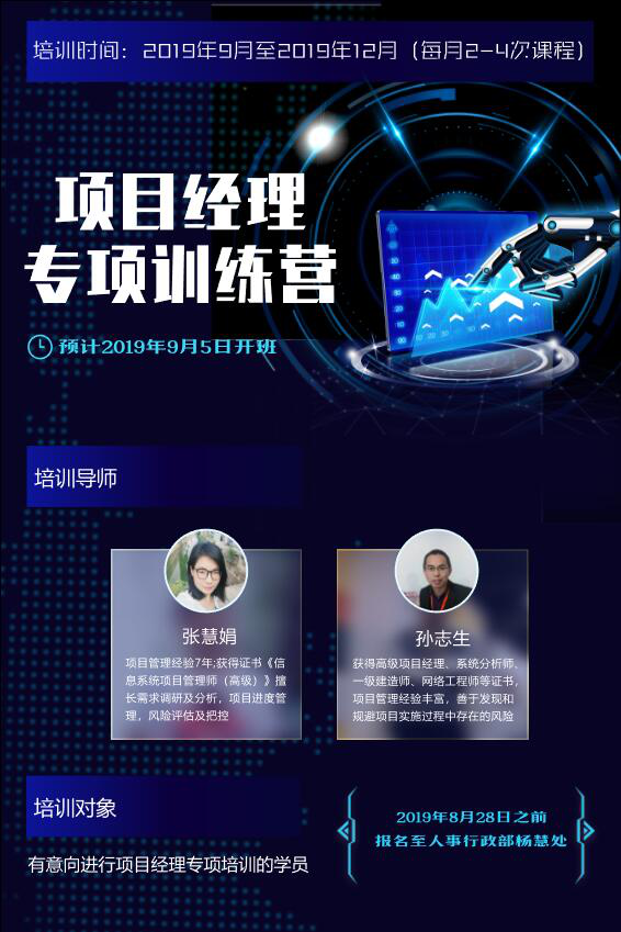 201995日,为期三个多月的项目经理训练营正式开班!培训导师是我们具有丰富项目管理经验的张慧娟老师和孙志生老师。报名参加培训的22位小伙伴,初聚八楼会议室,开始了自己的第一次培训课程。