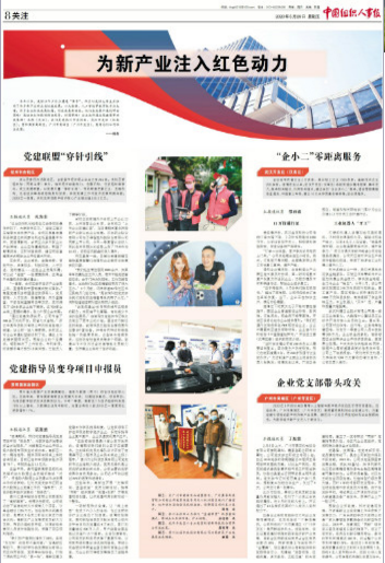 2020年5月29日,《中国组织人事报》刊登《为新产业注入红色动力》,点赞我司党支部在疫情期间为社区防疫工作做出的努力和贡献。