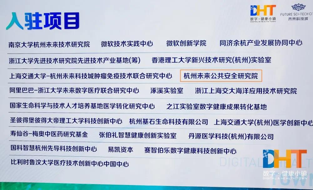 2020年生命健康未来峰会暨中国(杭州)数字 · 健康小镇开园仪式杭州未来公共安全研究院作为“三名研究院”之一签约落户中国(杭州)数字 · 健康小镇。