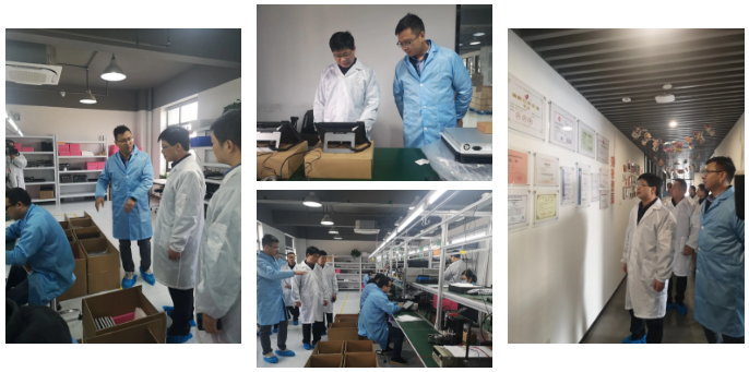 在智能终端生产车间,副总经理邬文达先生陪同各位领导参观车间并介绍了工厂规模、产品种类及性能。展示了叙简科技终端产品自主研发,软硬件自主可控的优势。