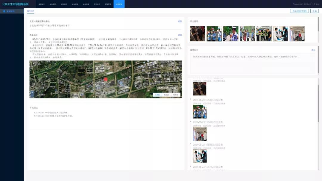 平台通过多渠道多维度智能上报公共卫生事件信息,精准辅助处置人员进行事件核实及事件报警触发,基于事件地图汇聚全市各类应急资源统计和展示,实现信息快速检索及处置,为应急指挥中心的科学、快速决策提供信息化资源支撑。