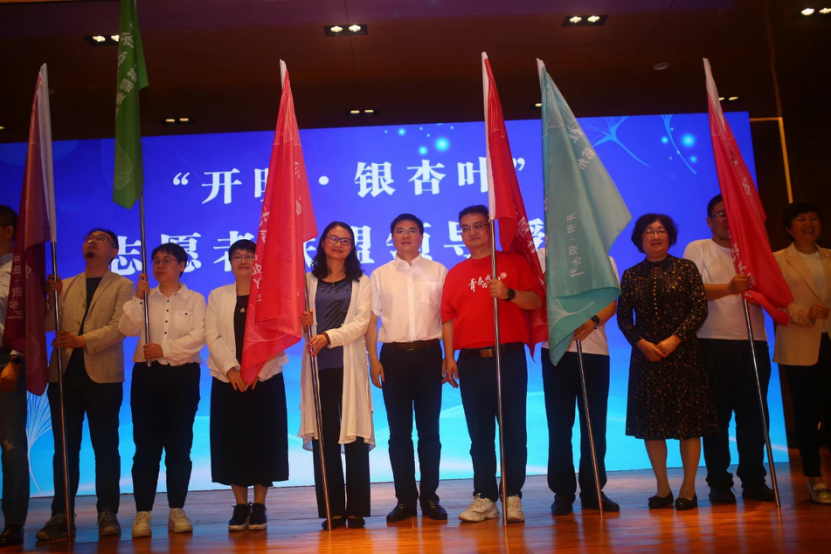 活动现场同时成立“银杏叶民进企业志愿者联盟”,共有10支企业志愿者队伍到场接受授旗,金国庆代表叙简科技志愿者队伍接受楼秀华主委亲自授旗。