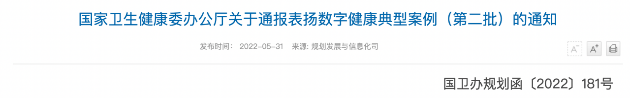 为进一步发挥典型示范带动作用,更好地促进全民健康信息化应用发展,充分发挥“揭榜挂帅、赛马争先、头雁引领”作用,5月31日,国家卫生健康委印发《关于通报表扬数字健康典型案例(第二批)的通知》,对评选出的100个典型案例和10个可复制推广的示范案例,予以通报表扬。叙简科技参与建设的武汉市公共卫生应急指挥系统案例入选全国数字健康典型案例和示范案例!