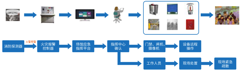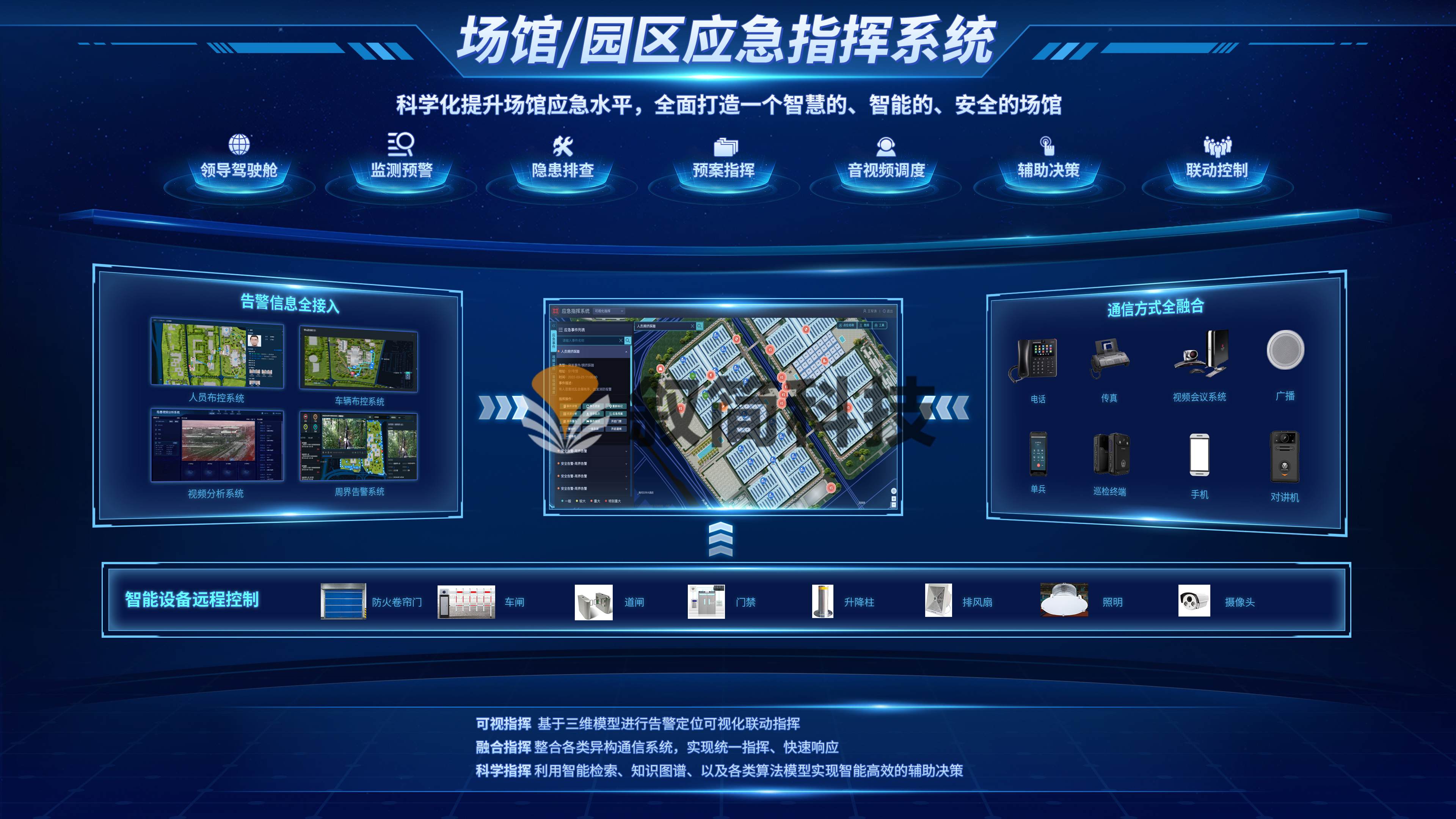通过系统实现对场馆监控摄像头、门禁、车闸、显示屏等智能设备的远程一键控制,提高突发事件应急处置效率。