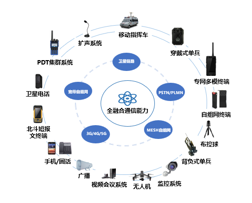 在地震发生后,有时通讯会被阻断。现场救援开展时,传统组网方式可能无法正常通讯,无法满足震后的应急救援工作开展的要求。系统可以通过融合通讯技术,融合MESH自组网通信、卫星通信、专网通信的设备,实现救援现场、指挥中心、各委办局各类异构终端的互联互通,确保精准指挥调度救援工作的正常开展。