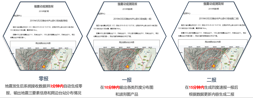 地震发生后,系统可自动根据地震发生的时间,在3分钟/10分钟/15分钟内,自动生成烈度速报零报/一报/二报的内容,并快速发布,区别于传统方式,让烈度速报实现了快速化、专业化、准确化的评估。基于破坏损毁程度模型、经济损失测算模型、建筑物易损性评估模型、次生灾害分析模型、救灾需求模型等灾损模型,实现对受灾情况、救援力量的自动评估。同时系统可自动产出地震会议会商的要情报告材料,助力地震会议会商快速、高效进行,助力智能指挥。