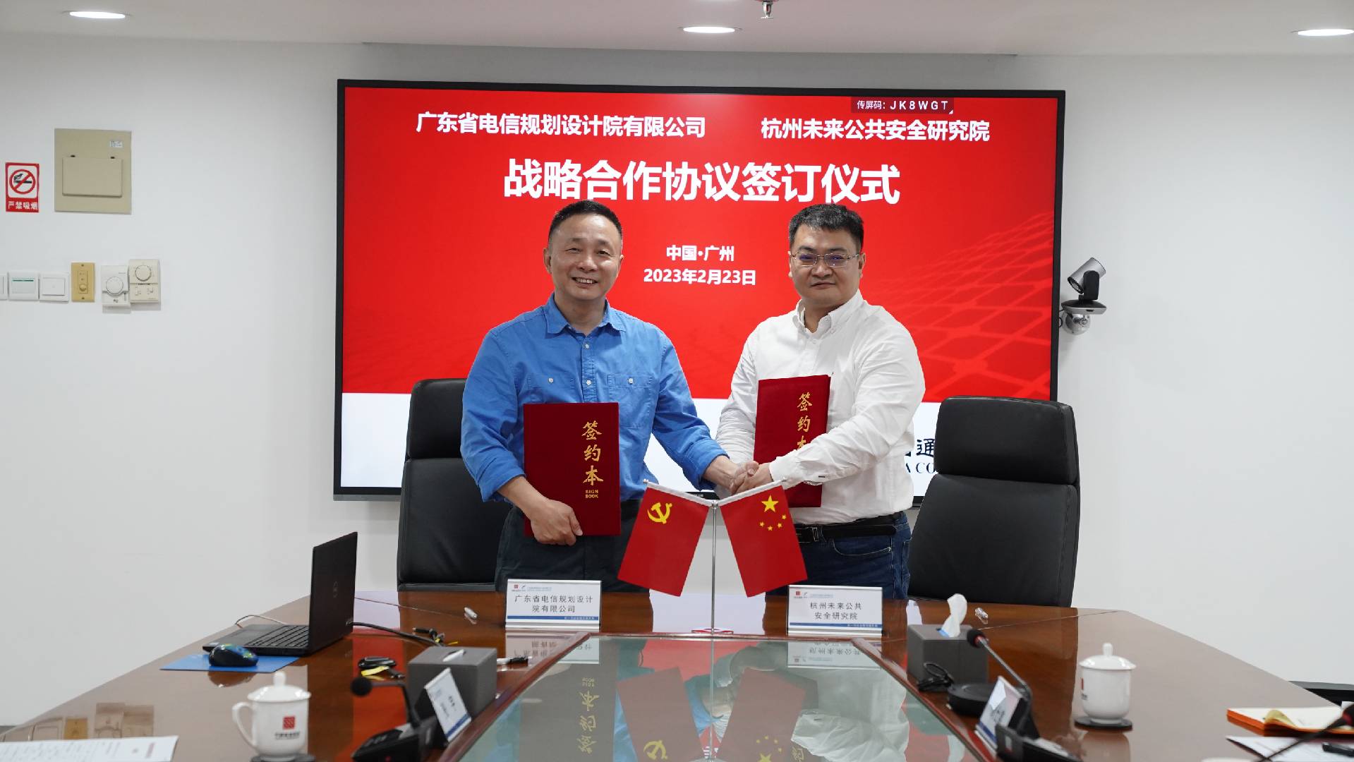 2月23日,广东省电信规划设计院有限公司(以下简称“广东省电信规划设计院”)、杭州未来公共安全研究院(以下简称“公共安全研究院”)、杭州叙简科技股份有限公司(以下简称“叙简科技”)三方战略合作签约仪式在南方通信大厦如期举行广东省电信规划设计院有限公司总经理等,杭州未来公共安全研究院院长、杭州叙简科技股份有限公司董事长金国庆、广州业务中心总经理郭源、广州业务中心总经理助理周仕鑫出席签约仪式。方将本着优势互补、平等互利、共同发展的原则,在智慧城市公共安全领域涉及城市安全运营监测、监管执法等一系列相关领域,深入战略合作。