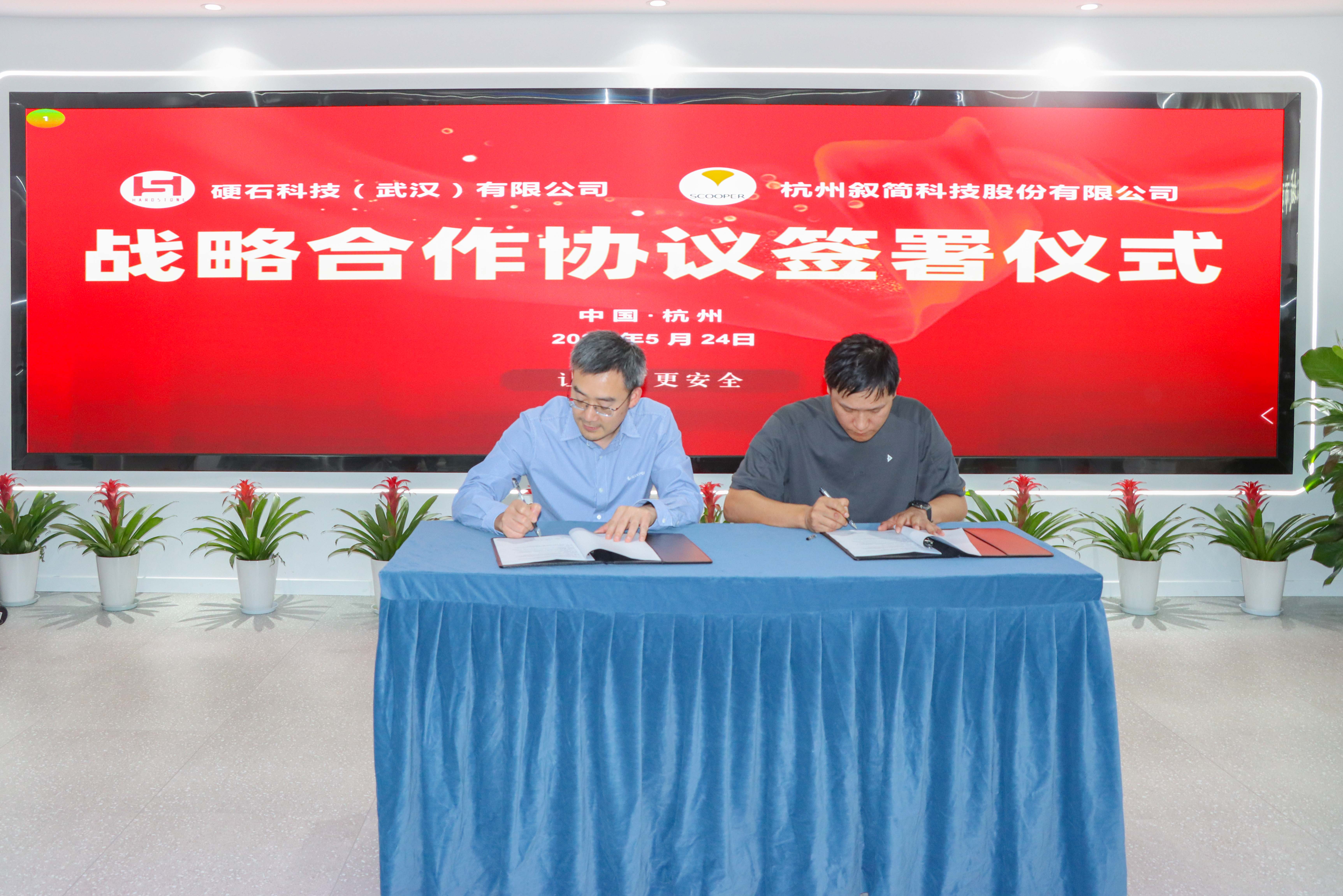 5月24日,叙简科技与硬石科技(武汉)有限公司(以下简称“硬石科技”)签署战略合作框架协议,双方将秉持信息共享、合作共赢的理念,以推进应急产业发展为基础,开展全方位、多层次的交流合作。硬石科技CEO韩旭、智慧政府事业部总经理钟登、智慧政务事业部总监李鹏为,叙简科技副总裁田远东、市场部总经理王东孝、杭州业务中心总经理周瑾、区域销售总监涂雪峰等出席签约仪式。
