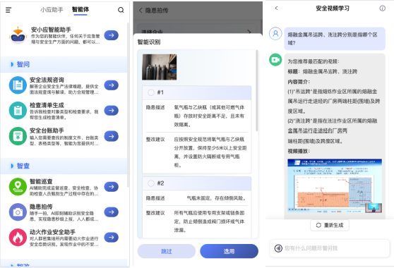 面向基層檢查人員,小應(yīng)集成 AI 隱患識別、語音報檢、檢查記錄自動生成與歸檔、數(shù)據(jù)多端同步等能力,打造貼身 “智能檢查助手”,實現(xiàn)安全隱患智能識別、檢查過程高效留痕,大幅簡化檢查流程,切實減輕基層工作負(fù)擔(dān)。